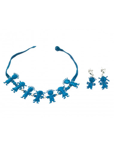Un bracelet macramé personnalisé avec les silhouettes d'un garçon et d'une fille et agrémenté de petits cœurs et de boules en argent 925‰ sans nickel..